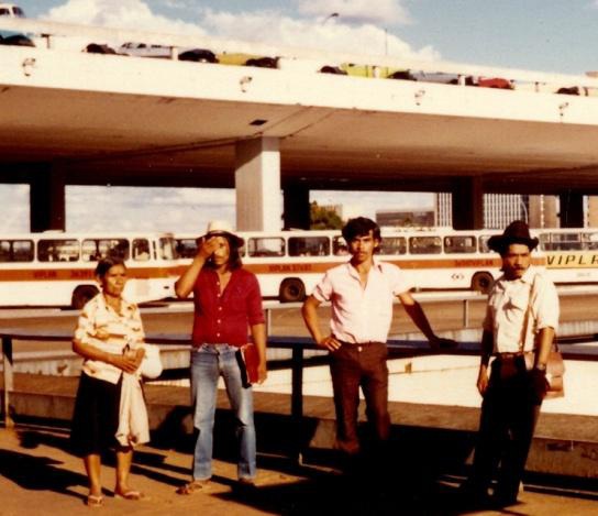 | Na rodoviária de Brasília, em 1985: uma das inúmeras viagens a capital federal para cobrar a regularização da terra. Foto: Arquivo Cimi Sul. |