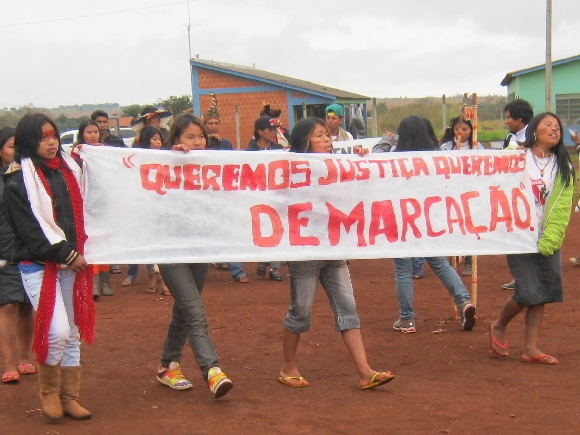Não aceitamos a ação do ministro da Justiça, José Eduardo Cardoso, que impede, num gesto ilegal, a Funai de continuar com seu dever constitucional em demarcar nossas terras. O ministro brinca com o sangue de nossas lideranças ao nos negar a terra que é nosso direito.