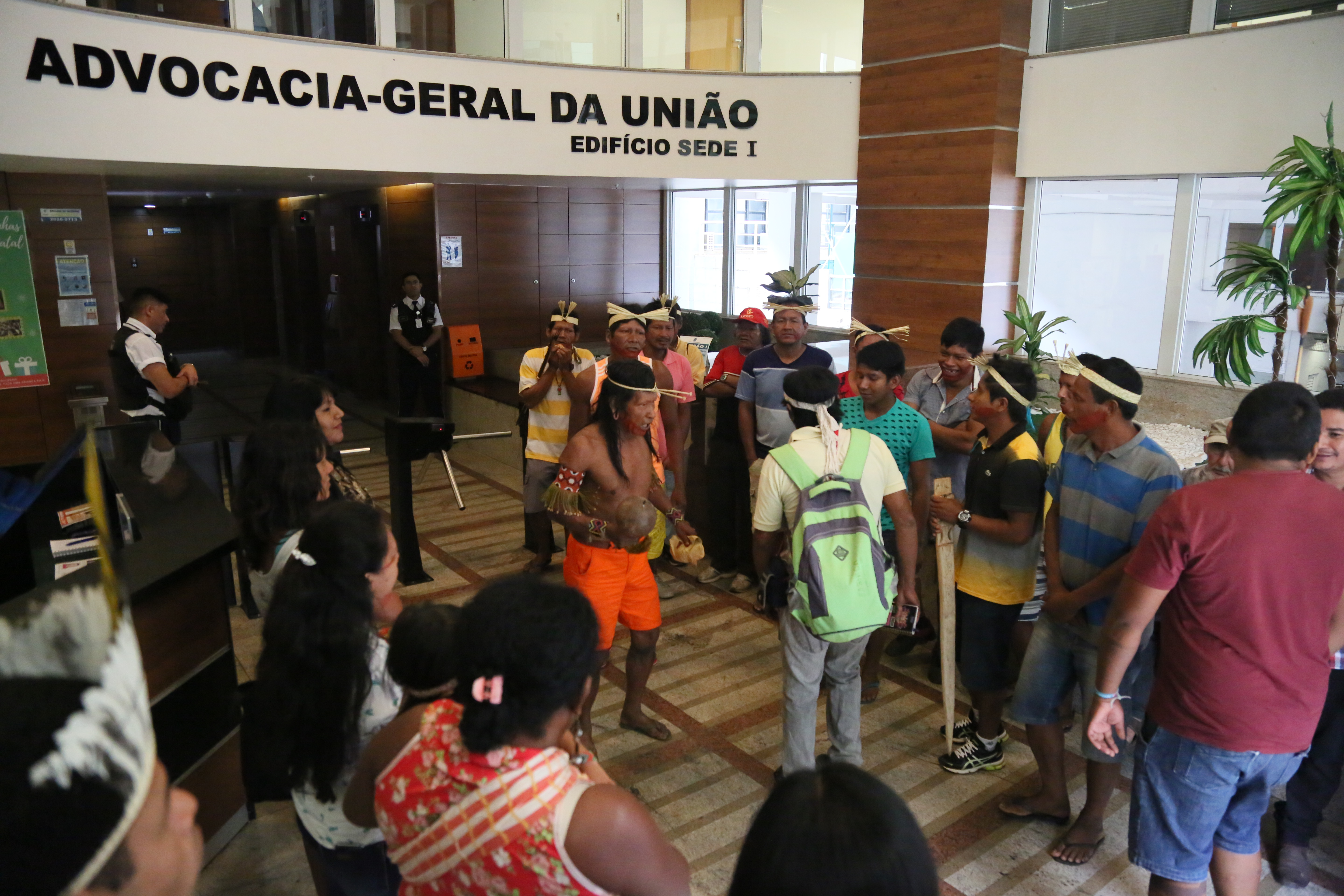 Na última semana, de 02 a 07, uma delegação de oito povos cumpriu uma série de agendas em Brasília (DF). Nos órgãos federais, aproximadamente 70 indígenas vindos do Maranhão (povos Apanikrã Kanela, Krepun, Memortumré Kanela, Krenyê e Gavião), de Roraima (Macuxi e Wapixana) e da Bahia (Tupinambá de Olivença) ressoaram o grito que repudia medidas assumidas pelo atual governo. A principal agenda ocorreu na Advocacia Geral da União (AGU), terça-feira (03), onde os indígenas exigiram a revogação do parecer 001/2017, chamado de anti-demarcação.